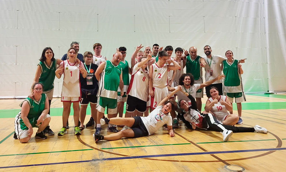 Nikolaus-Kopernikus-Schule Hügelsheim und der Pioneers Rastatt im Alter von 11 bis 17 Jahren – mit und ohne Behinderung – zum Special Olympics Unified Basketball-Turnier nach Sansepolcro, Italien.