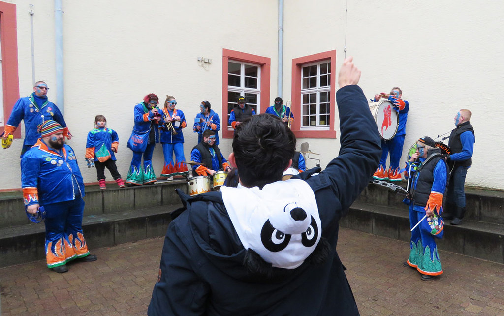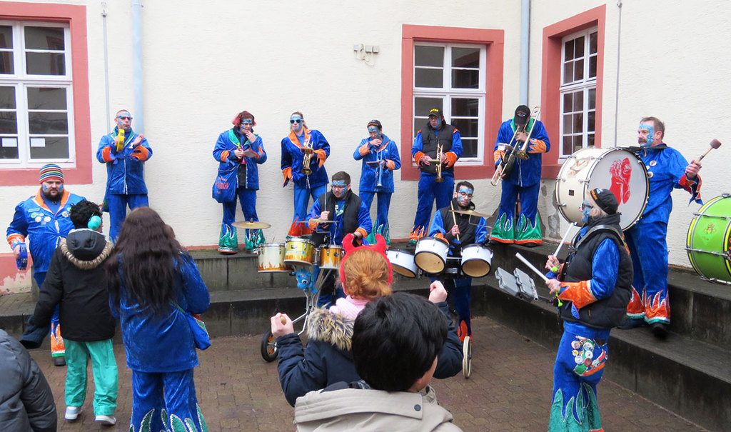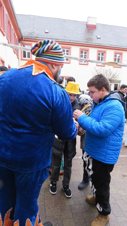 Bevor auf dem Marktplatz das traditionelle Martinsfeuer der Freiwilligen Feuerwehr entzündet wurde, zog ein Reiter von der Post- über die Kaiserstraße. Das Martinsspiel der Schüler und Schülerinnen der Pestalozzi-Schule begleitete die Jugendkapelle der Stadtkapelle Rastatt.