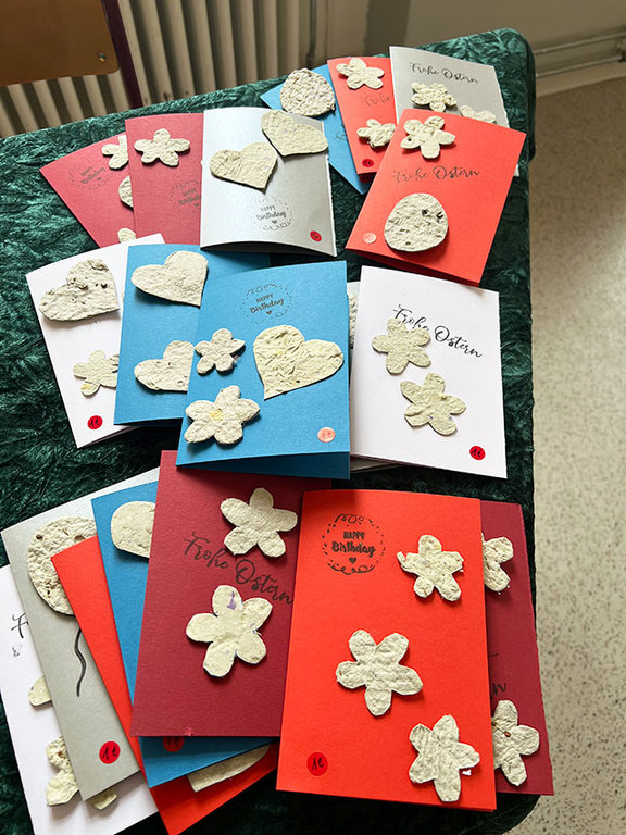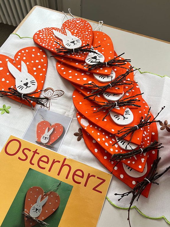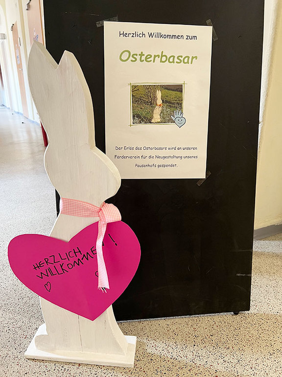 Die Berufsschulstufe lädt zum Osterbasar und Ostercafé ein. Die Schülerinnen und Schüler verkaufen selbstgefertigte Hasen, Eier, Küken und Herzen aus Holz, Kerzen und Dekoartikel, bewirten Eltern, Schüler und Interessierte mit Kaffee und selbstgebackenen Kuchen. Der Erlös kommt unserer Schule zugute.