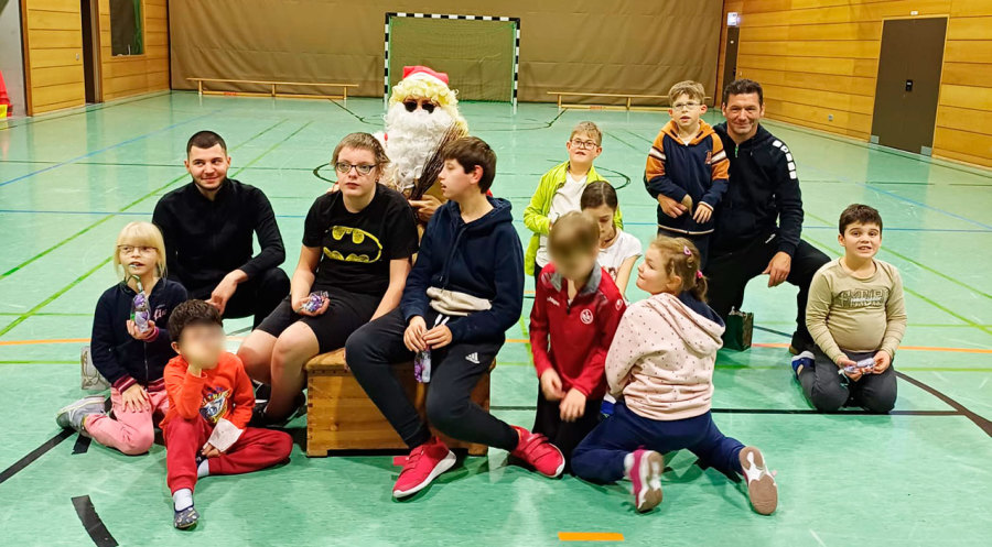 Lily Fahrner und Robert Höllig durften sich eine Schulsporteinheit anschauen, um einen detaillierteren Eindruck zu gewinnen, welche Gruppenstärke mit dem vorhandenen Personal gut betreut werden kann. Die Kooperation sollte für Kinder mit verschiedenen Handicaps, die zwischen 7 und ca. 13 Jahre alt sind, offen sein und wurde auf Wunsch des Organisators zunächst sehr vorsichtig beworben, um eine gute Betreuung der Kinder sicherstellen zu können. Man hatte sich bewusst auf eine breite Altersstruktur festgelegt. Anfang Oktober fand die erste Übungseinheit mit 10 Kindern statt und kam bei Kindern und Eltern sehr gut an. Kurz darauf wurde ein elftes Kind aufgenommen und seither treffen sich 5 Mädchen und 6 Jungs einmal wöchentlich zum Sporttraining in Steinmauern. Die Trainingsbeteiligung war von Beginn an sehr gut und die Kinder arbeiten immer sehr motiviert mit. Ob bei verschiedenen Fangspielen, speziellen Bewegungsparcours, oder methodischen Übungsstationen – die Kinder sind mit großem Eifer dabei. Selbst der Nikolaus kam zu Besuch und war voll des Lobes für die Kinder.